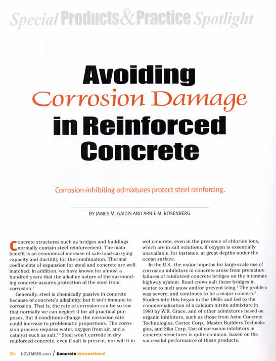 Avoiding Corrosion Damage in Reinforced Concrete - Concret International, November 2001