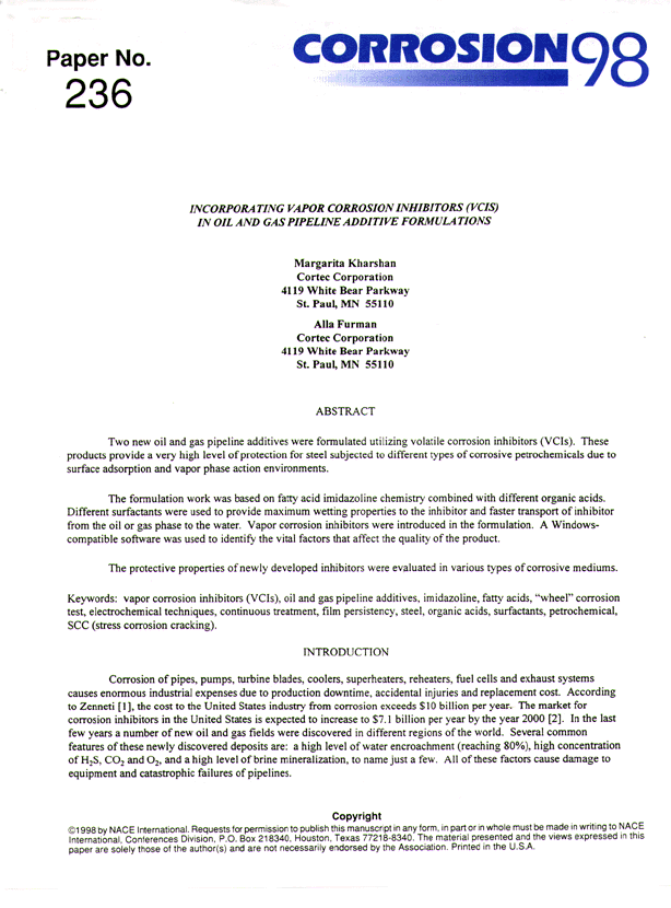 Incorporating Vapor Corrosion Inhibitors (VCIS) In Oil and Gas Pipeline Additive Formulations - Page 1