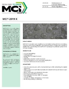 - FEATURED IN: New MCI-2019 X Adds Greater Flexibility to MCI Portfolio Featured in For Concrete Repair Magazine