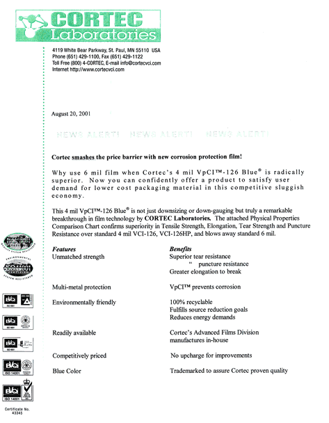 [About Cortec] [What's New] [Publications] [Products] [Contact Us] [Related Links] [International]